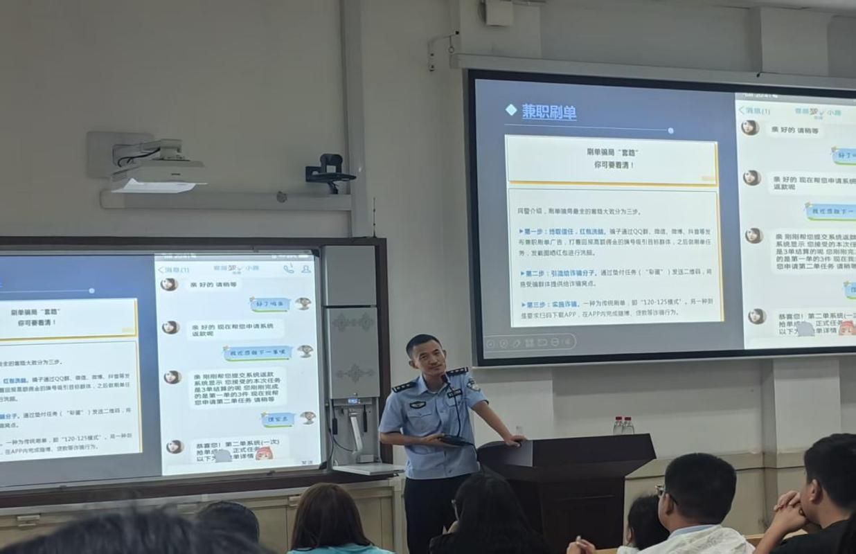 学院特邀太原市直属分局警官为大家做法治安全教育,开展防诈骗教育,提高学生的安全意识和甄别能力。