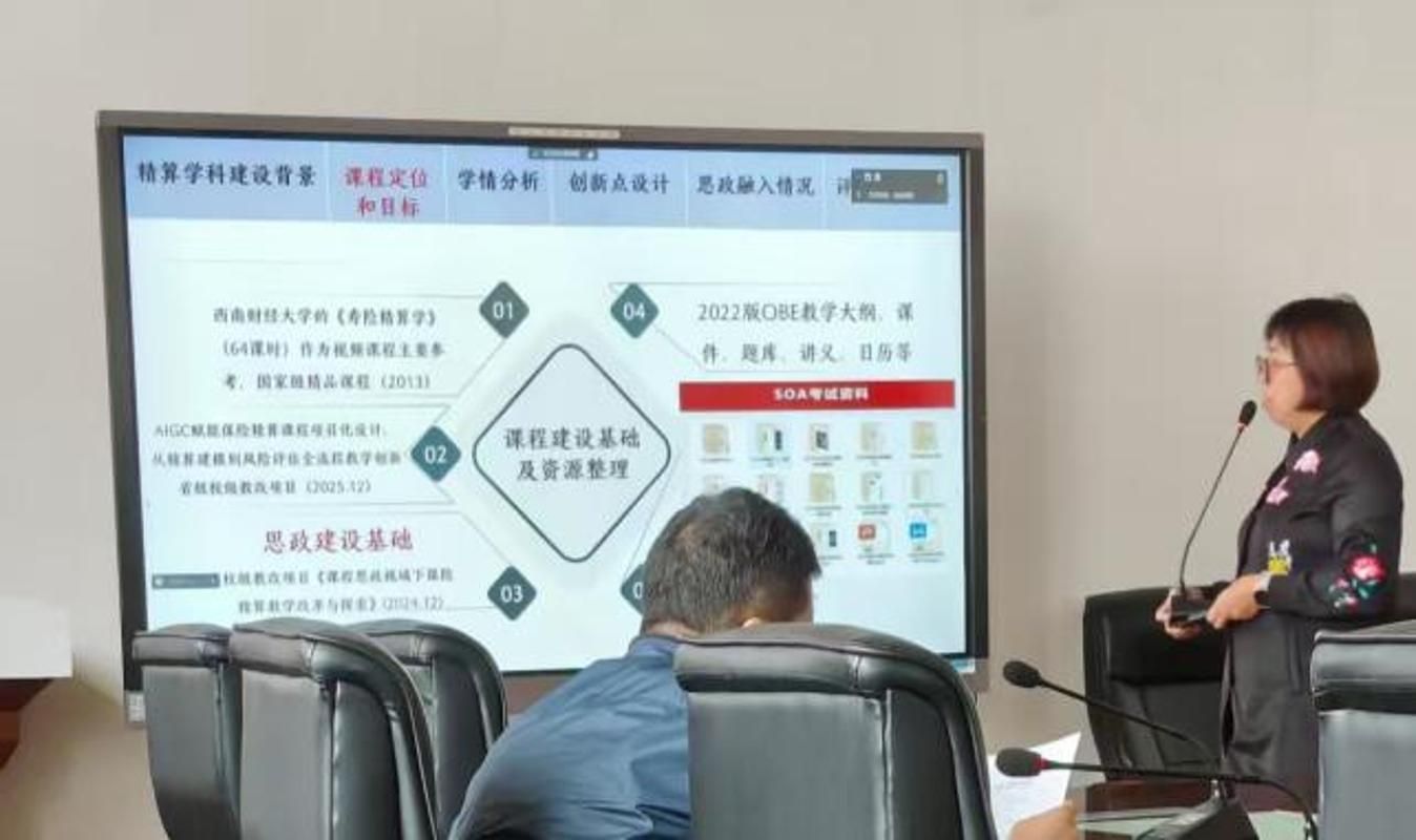 保险精算课程团队(汇报人卞小娇,成员高侯平、晁娜娜)发布课程建设成果汇报,系统展示了以 “对接行业标准、融合技术创新、融入思政元素” 为核心的课程改革路径,为高校精算人才培养提供新范式。