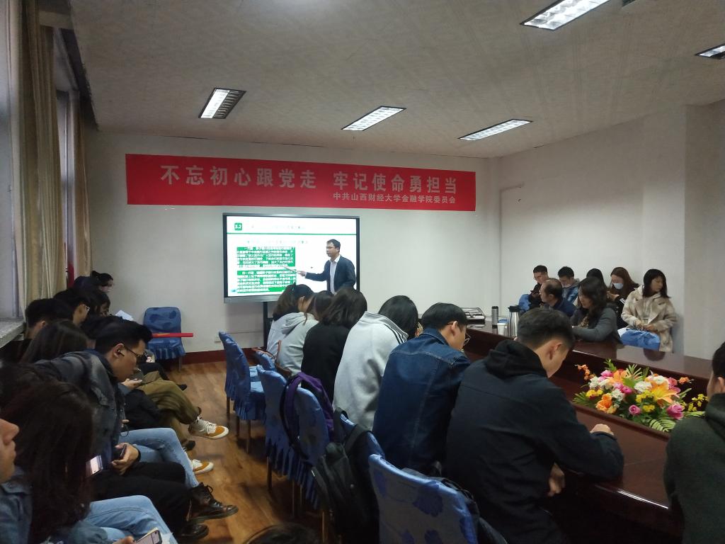 2020-2021学年第二学期第1期学术沙龙活动于2021年3月23日晚在学院会议室如期举行。本次沙龙主题是“影子银行对我国金融稳定性的影响”,由郭志兴、李政作为主讲人来为大家进行汇报讲解。此次学术沙龙很荣幸邀请到郭志芳老师、毛传为老师来担任讲评嘉宾。参加本次学术沙龙的有来自金融学硕、金融专硕、金融工程以及保险专硕的研一等70余位同学。