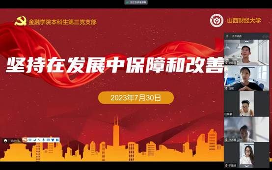 概要:继上次本科生第三党支部预备党员季雅婧带领大家学习第九章和第十章的内容后,在7月30日进行了第十一章的学习,本章的主要内容是“坚持在发展中保障和改善民生”,本章由本科生第三党支部预备党员孙志越带领大家学习,本科生第三党支部邱马玥主持并总结发言。