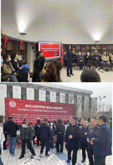 学院教师积极参加“廉洁从教树师德 廉洁从业树新风”主题教育活动;号召教职工参加“廉洁从教树师德 廉洁从业树清风”签名承诺活动,教职工在廉洁从教、廉洁从业公开承诺签名板上签字,努力营造全体教职工爱岗敬业、忠于职守的廉洁校园氛围。