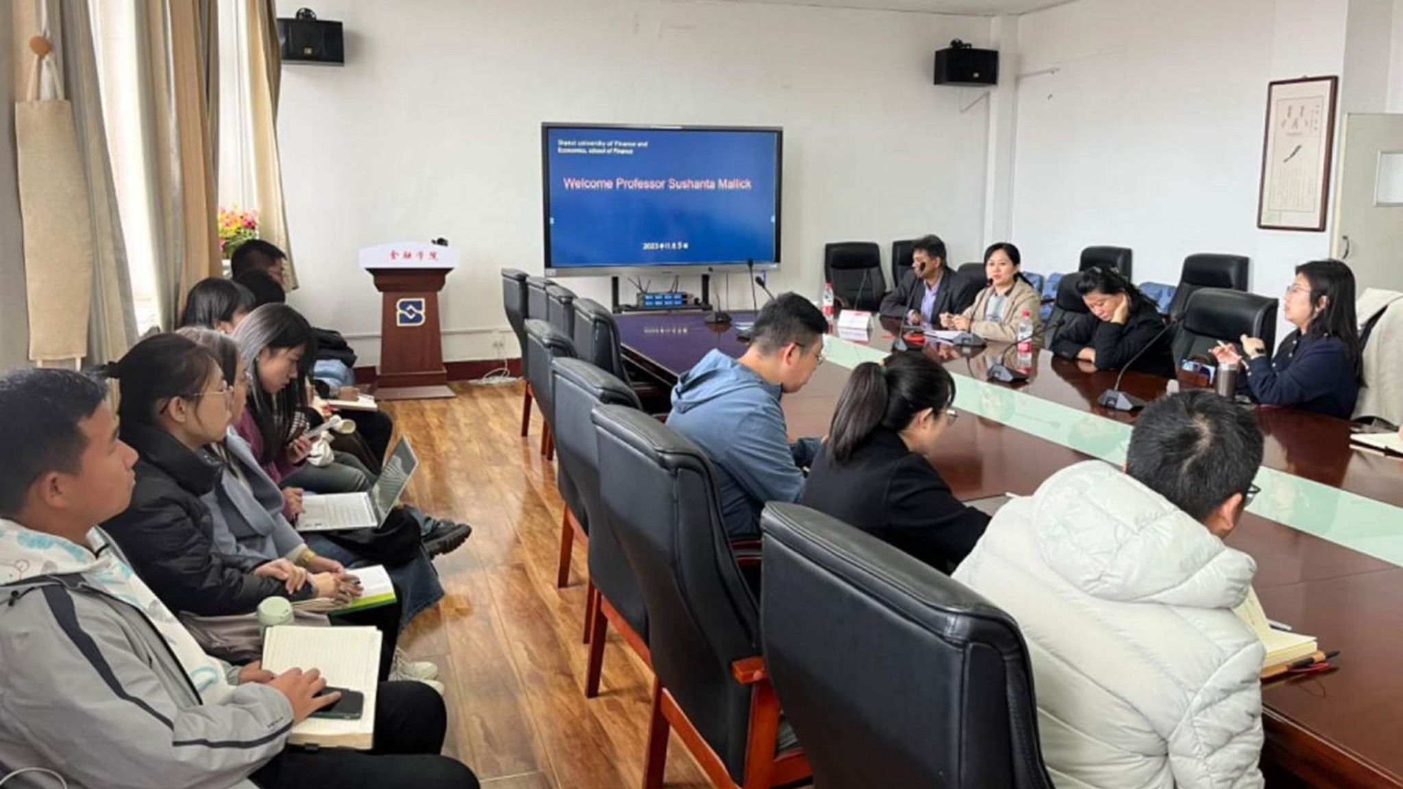 After the sharing, Prof. Sushanta had a more in-depth discussion and exchange with the teachers and students on the paper’s topic selection and research methodology, etc. He patiently and meticulously answered the questions raised by the teachers and students. At last, on behalf of all the teachers and students, Vice Dean Cui Jie expressed thanks to Prof. Sushanta. All the people benefited from this lecture, not only clarified the direction of paper topics, but also learned the cutting-edge research methods.(Contributed by Hu Zhongli, School of Finance)