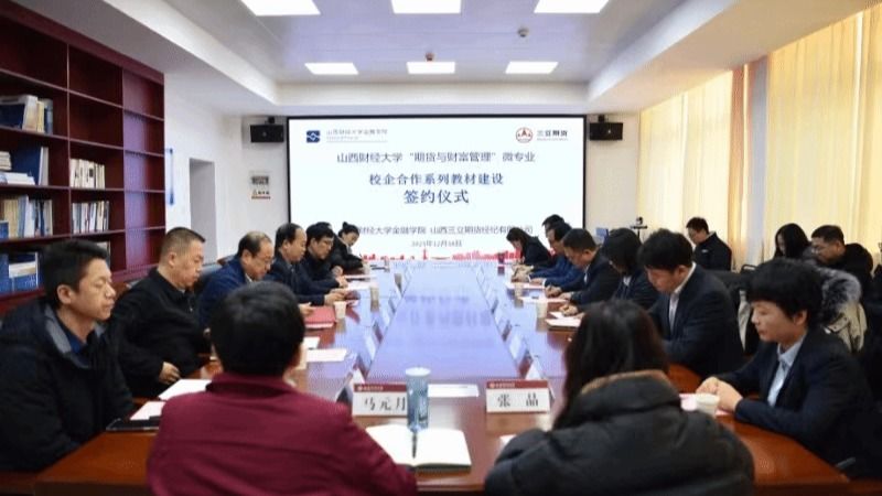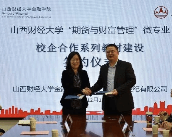 在会议的最后,双方代表共同签署了合作协议,正式启动了“期货与财富管理”微专业系列教材的合作建设,双方坚信本次微专业课程的共同开发,定能建立和完善适应山西实体经济发展的人才培养新模式,进一步深化产教融合,打造期货人才自主培养的新高地,为地方发展和社会进步做出更大贡献!