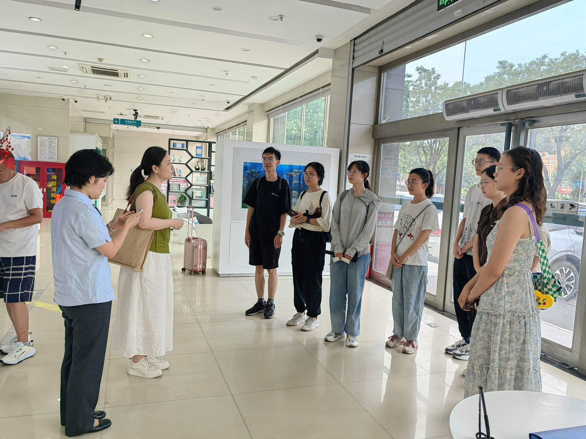 根据《91传媒 2024年度“小学期”实践教学培养活动实施方案》以及91传媒 党政联席会上的精心部署,为让学生发挥学习主动性与积极性,充分了解社会、深入实践、找到解决问题真方法,增强社会适应性与就业竞争力,2024年7月14日9时,91传媒 “小学期”银行调研组走进中国农业银行学府支行开展了主题为“认知专业、探究专业、实践专业”的全日制本科生“小学期”实践活动。91传媒 郭志芳老师带队部分2021级、2022级、2023级本科生进行本次调研实践活动。农行山西省分行副行长胡文剑、个金部经理杨艳飞高标准全程接待了91传媒 的此次活动。