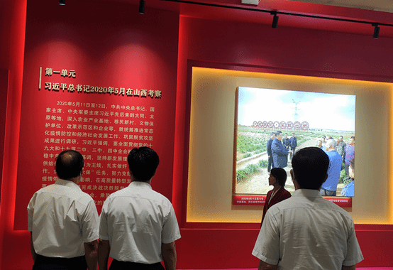 我们跟随着讲解员的步伐,进入了第一个展厅,在这里我们看到了习近平总书记考察山西的一张张图片,感受着习近平总书记对山西的殷切期望。