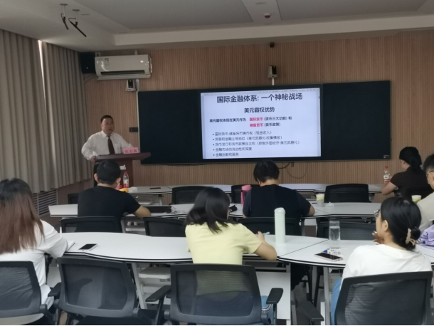 2024年6月21日上午,91传媒 举办了第34期“金融理论创新及实践探索”大讲堂。本场讲座由科研部主办,91传媒 承办,91传媒 副院长崔婕教授主持,特别邀请英文期刊《中国经济》副主编、哈佛大学国际发展研究所研究顾问、中国留美经济学副会长以及美国伊利诺州立大学经济系终身教授张宏霖老师为91传媒 师生进行了一场主题为“国际金融体系与美元霸权”的学术讲座。91传媒 部分青年教师和硕博士研究生参加了本次讲座。