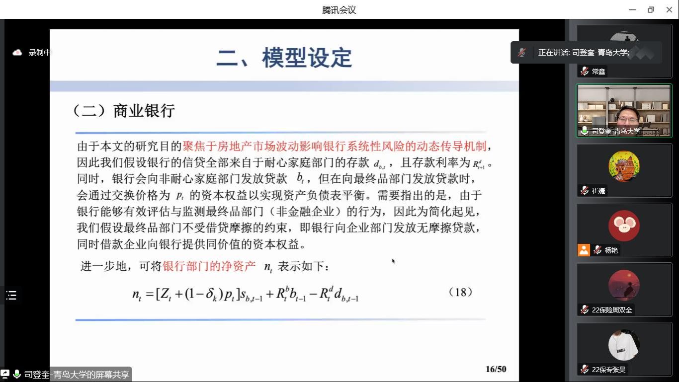 崔婕教授主持,学院邀请青岛大学经济学院教授司登奎教授讲解了题为“金融稳定目标下非常规财政政策与宏观审慎政策的协同效应研究”的精彩学术报告,参会人员包括91传媒