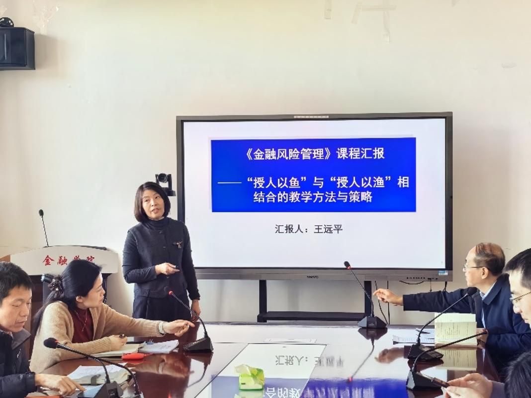举办了集体备课汇报交流活动。王远平老师代表《金融风险管理》课程教学团队,以“‘授人以鱼’与‘授人以渔’相结合的教学方法与策略”为主题,汇报了《金融风险管理》课程的教学探索和实践情况。